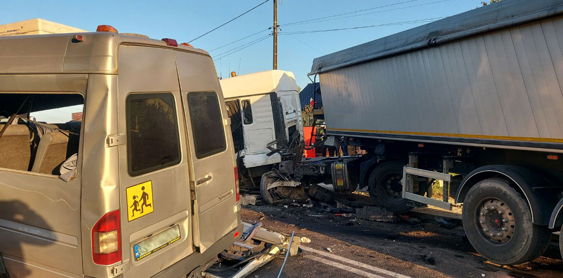 Autobus zderzył się z samochodem ciężarowym.